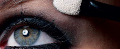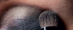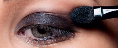 Com um pincel menor, aplique a sombra pérola junto às sobrancelhas no arco superior para iluminar as pálpebras (abre o olhar e complementa a maquiagem dos olhos). Finalize com máscara para os cílios.