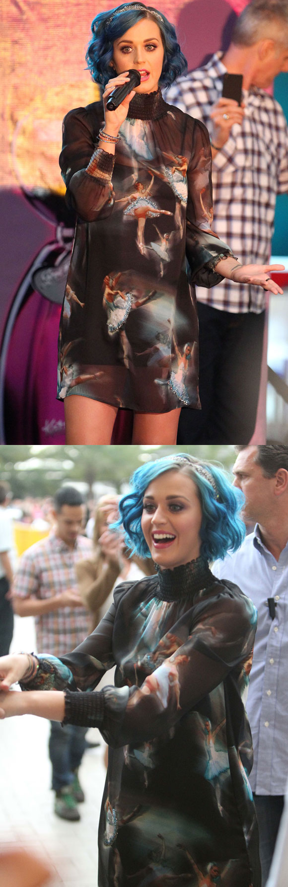 meiguice, o vestido preto transparente de Katy era todo estampado.